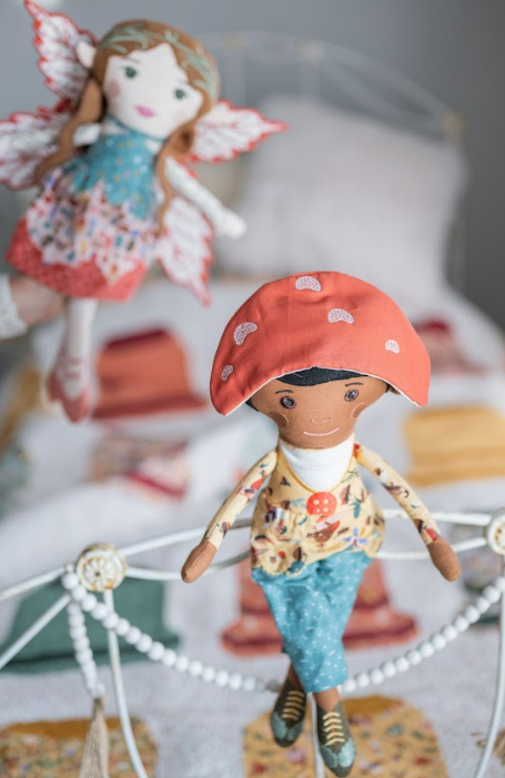 Bramble is part of the Thimbelina Doll Collection and is shown using fabrics from the Thimbelina fabric collection. His soft details and simple styling tie beautifully into the rest of the collection.