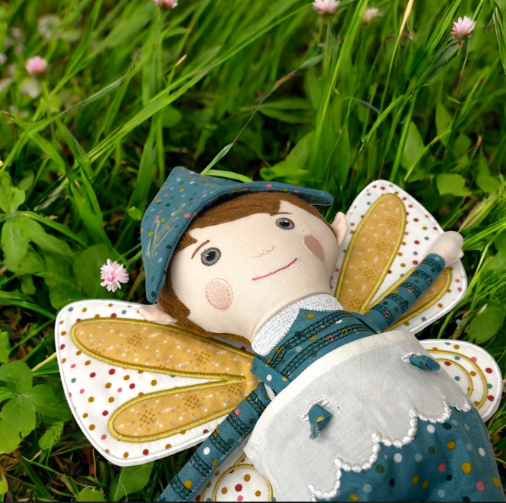 The Dash Doll features a rounded head, simple limbs, and soft curves that are beginner-friendly while still teaching important in-the-hoop construction techniques.