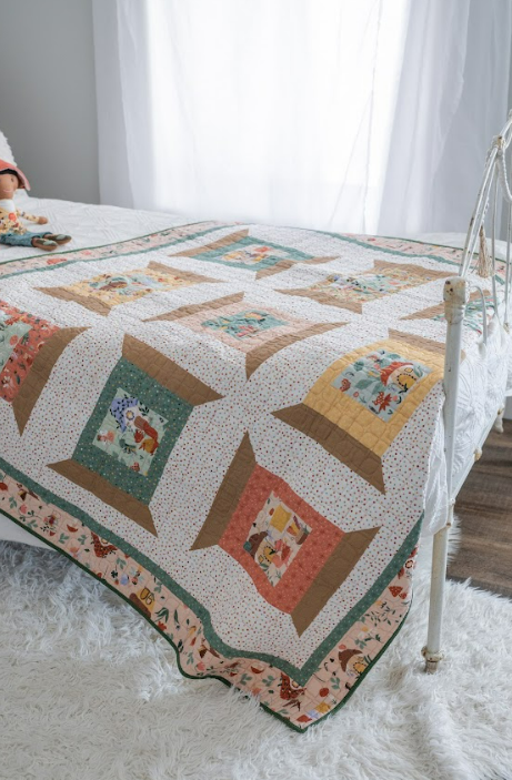 Sewing the spools is an enjoyable process. The block is constructed with simple units, and each part frames your selected artwork or print in a sweet and balanced way. With careful pressing and a steady pace, you will create blocks that lay flat and fit beautifully into the Week 4 assembly.